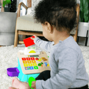 El modo de juego cautiva a los bebés con efectos sonoros y melodías y les introduce en sus primeros temas de compras. El modo descubrimiento enseña a los más pequeños los números, los colores y los alimentos en 4 idiomas.