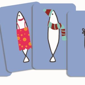 Contenido: 50 cartas (40 cartas pequeñas de sardinas + 10 cartas grandes de latas de sardinas). Reglas del juego en 10 idiomas.