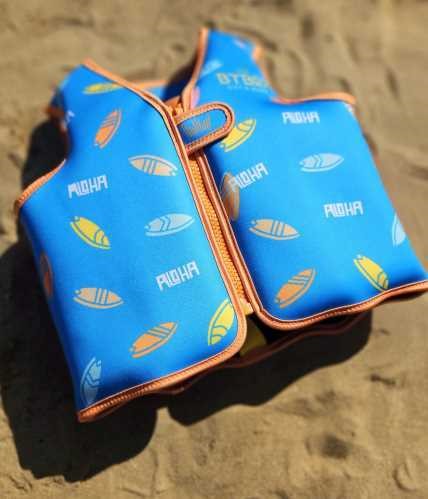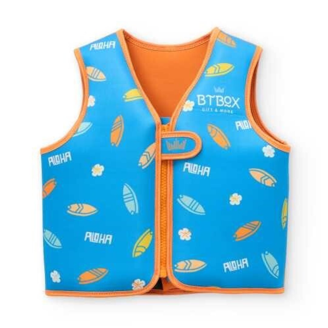 El chaleco flotador de BTBOX estƔ fabricado en neopreno de 5mm muy agradable al tacto y con unas costuras que no molestan ni daƱan la piel del niƱo/a.