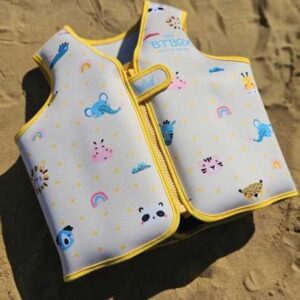 El chaleco flotador de BTBOX estƔ fabricado en neopreno de 5mm muy agradable al tacto y con unas costuras que no molestan ni daƱan la piel del niƱo/a.