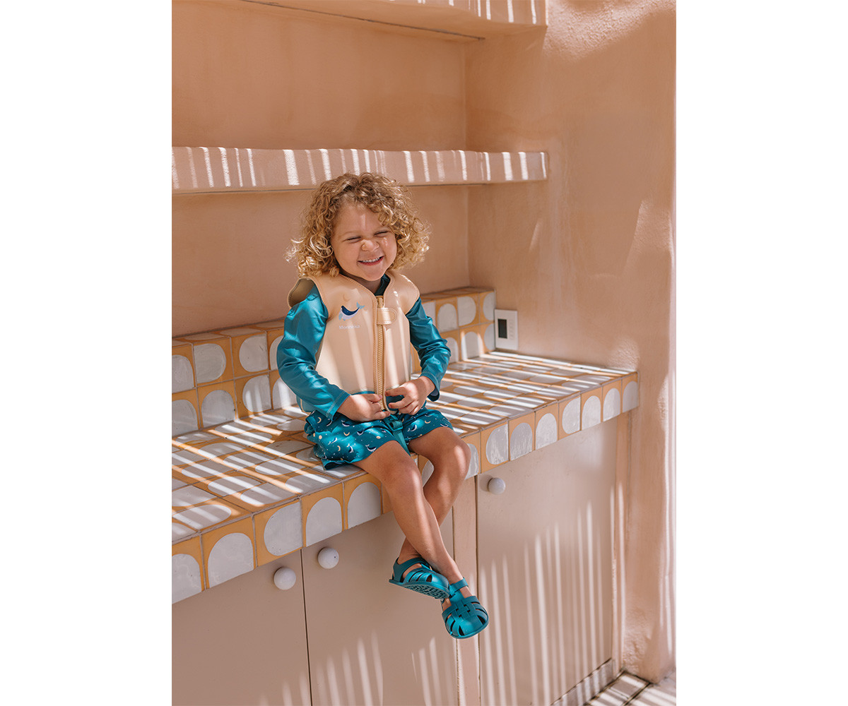 Empieza la aventura del agua con el chaleco flotador Monnëka de la nueva colección Whale Teal 2026, ideal para acompañar a los más pequeños en su aprendizaje de natación. NOVEDAD: Este año la talla 1-2 tiene un nuevo diseño, que incluye foam en la parte superior del pecho y la zona posterior del cuello, mejorando la posición horizontal y el equilibrio en el agua.