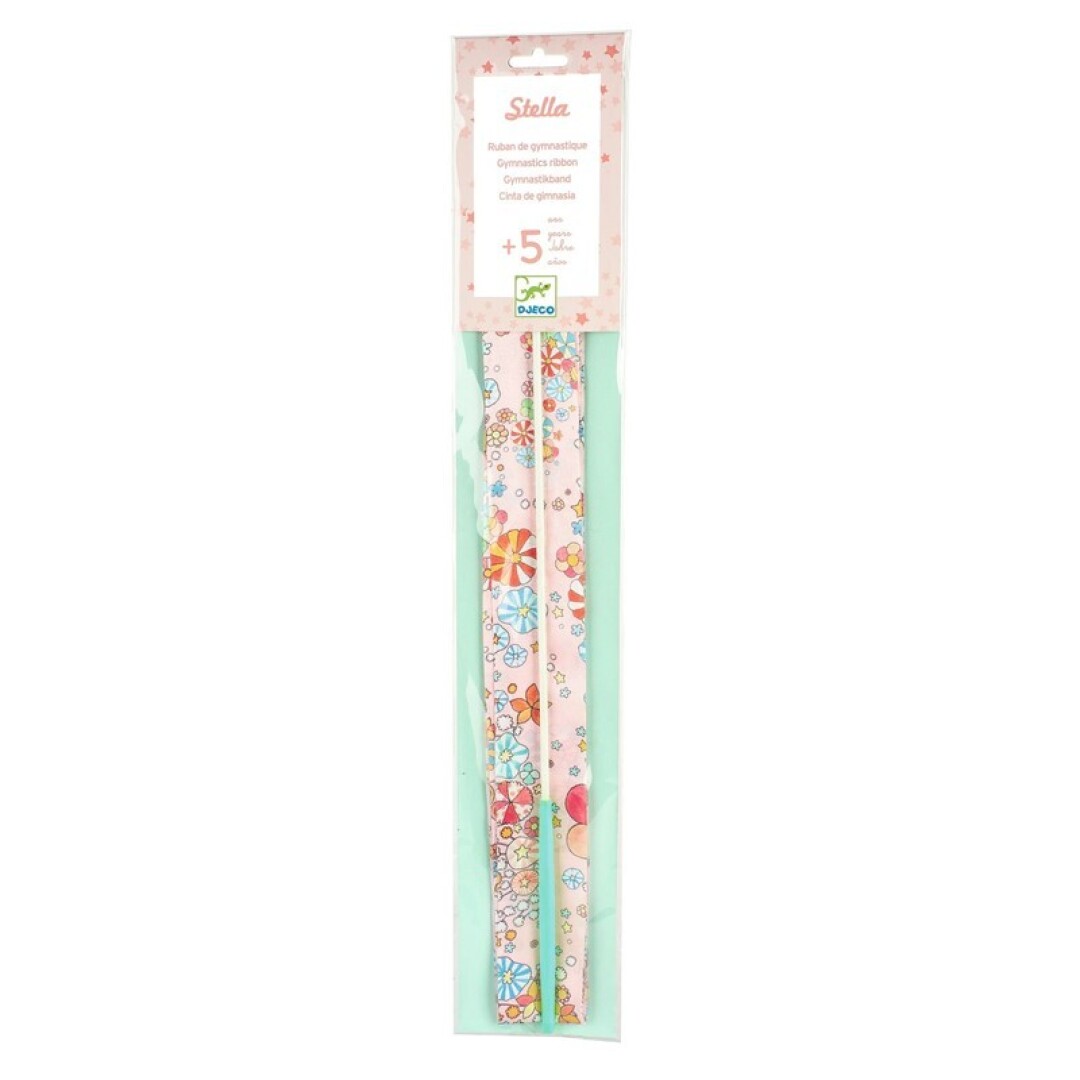 Stella es una cinta de gimnasia ligera, manejable y resistente con un delicado estampado floral. ¡Ideal para practicar elegantes figuras de gimnasia rítmica!