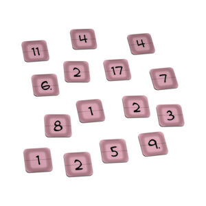 CONTENIDO: 1 tablero de juego, 4 fichas de niños/as, 15 fichas de números, 6 dados, 1 instrucciones del juego.