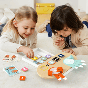 Dos manos de fieltro vibrantes son las protagonistas de este juego educativo. Sujetas con velcro, los niños pueden manipular fácilmente los dedos, convirtiendo el aprendizaje en una experiencia táctil y atractiva. Equipado con tarjetas de actividades y fichas numéricas de madera, Finger Math anima a los niños a resolver fácilmente sus primeros problemas aritméticos. Ya sean sumas o restas sencillas, los niños practican sus habilidades matemáticas jugando moviendo los dedos para calcular las respuestas correctas. Finger Math no se trata solo de números; se trata de cultivar el amor por el aprendizaje. Al mover los dedos libremente, los niños no solo practican aritmética, sino que también sientan las bases para el reconocimiento y la comprensión de los números de forma divertida e interactiva.