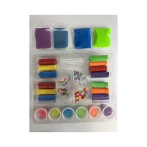 Incluye 4 componentes distintos, plastilina, arena mágica, slime con olor y plastilina con colores neon.Incluye 12 packs de plastilina con olor de 85 gramos cada uno, 2 packs de arena mágica con olor de 130 gramos cada una, 2 packs de slime con olor de 130 gramos cada uno , 6 botes de colores neon de 85 gramos.Incluye accesorios para poder hacer tus creaciones, bolitas de colores, lentejuelas y mas.Contiene gluten.