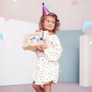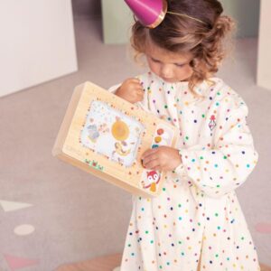 Un pequeño giro de botón en la caja de música y la orquesta se pone en marcha y entona una alegre canción. Gracias a su asa, podrás llevar contigo a todas partes esta caja de música magníficamente ilustrada.