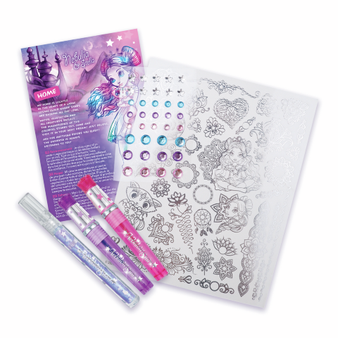 ¡Brilla como las estrellas! Usa tatuajes temporales, bolígrafos de tinta metálica y adhesivos de cristales para decorar tu cuerpo con hermosos diseños.