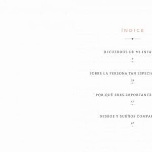 – Un pequeño libro de 80 páginas para rellenar. Una edición cuidada y elegante en tapa dura, con diseño limpio y actual.