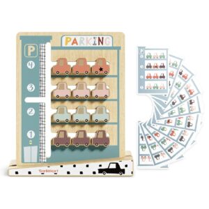 Desafío de Aparcamiento. Desafío de Aparcamiento aporta un toque de diversión y aprendizaje al día a día de cada niño con su innovador rompecabezas de combinar colores de coches. Este rompecabezas incluye 10 tarjetas de doble cara que ofrecen 20 combinaciones únicas para diversos desafíos. Los niños pueden deslizar las piezas del coche para que coincidan con el patrón de la tarjeta, transformando cada sesión de juego en un divertido ejercicio de memoria, reconocimiento de patrones y resolución de problemas.