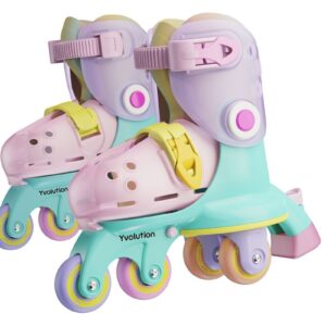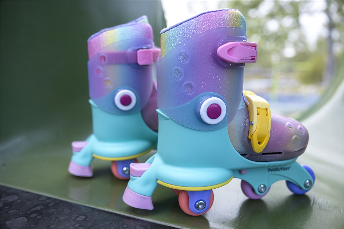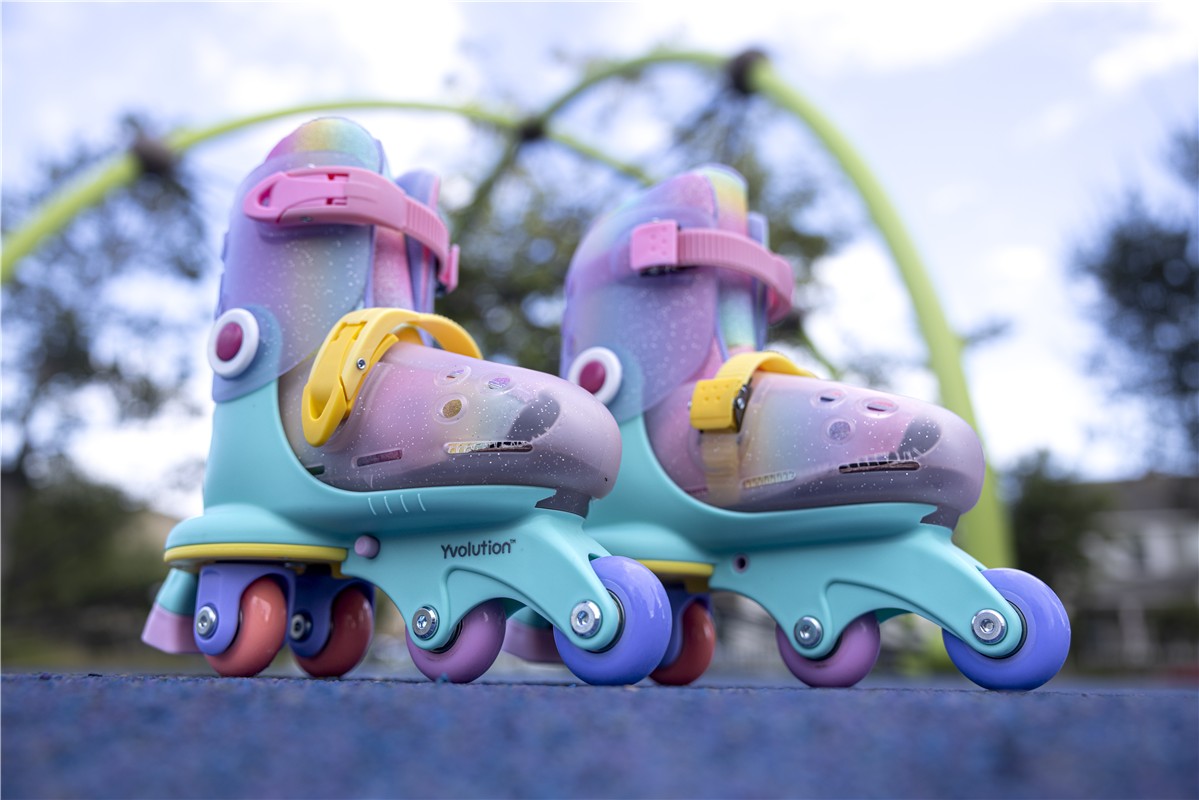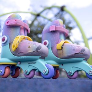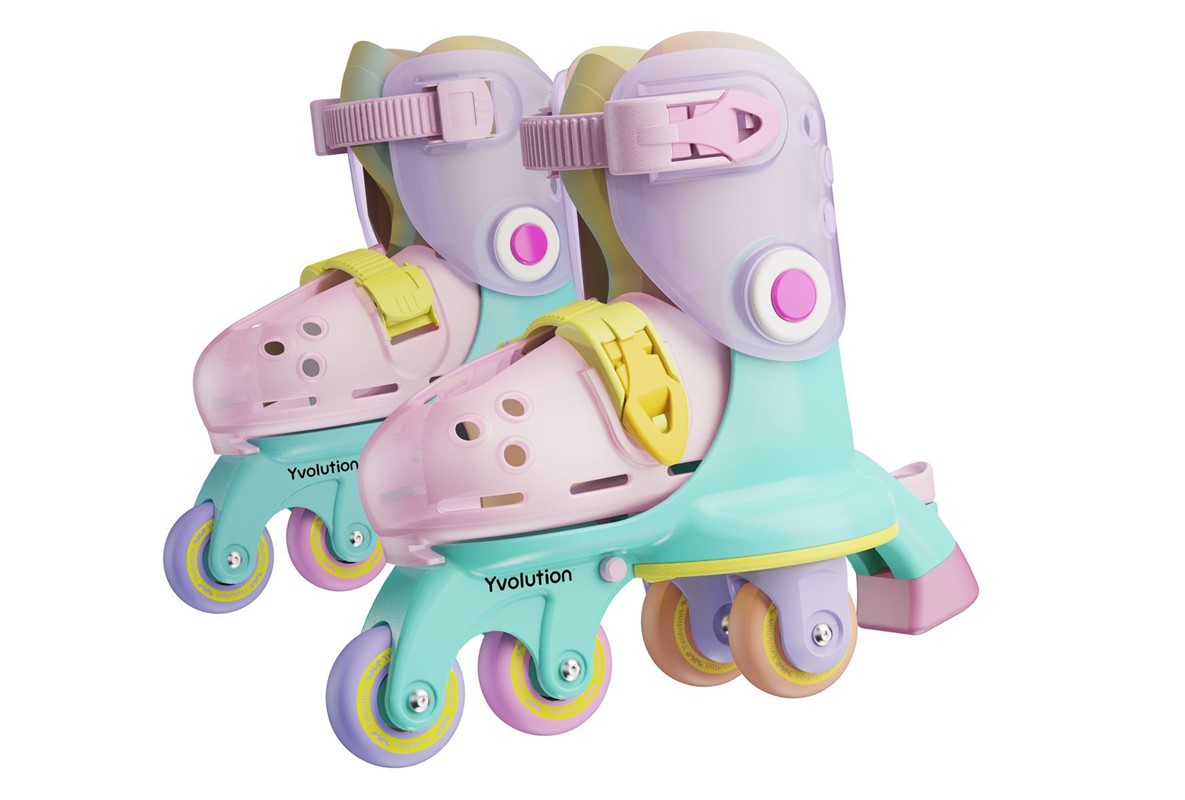 Nuevo color rainbow con bonitos tonos pastel y nuevo packaging, caja cerrada.Los patines Yvolution Twista son patines de ruedas para niños pequeños.Ajustable hasta en 4 tallas (de la 30-34) con una simple pulsación, te será fácil ponértelas y descubrir las primeras sensaciones de deslizamiento. Las ruedas traseras modulares en línea o en paralelo evolucionan sin herramientas y ofrecen una estabilidad adaptada al progreso del niño.Lleva un mecanismo evolutivo para cambiar de 2 ruedas laterales a ruedas en línea sin herramientas.