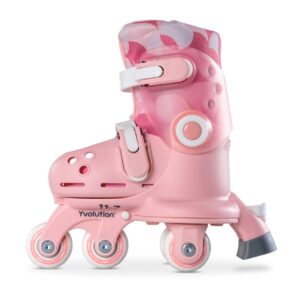 El color rosa de siempre en los Patines Twista con cambio en el packaging, caja cerrada.Los patines Yvolution Twista son patines de ruedas para niños pequeños.Ajustable hasta en 4 tallas (de la 23 a la 28) con una simple pulsación, te será fácil ponértelas y descubrir las primeras sensaciones de deslizamiento. Las ruedas traseras modulares en línea o en paralelo evolucionan sin herramientas y ofrecen una estabilidad adaptada al progreso del niño.Lleva un mecanismo evolutivo para cambiar de 2 ruedas laterales a ruedas en línea sin herramientas