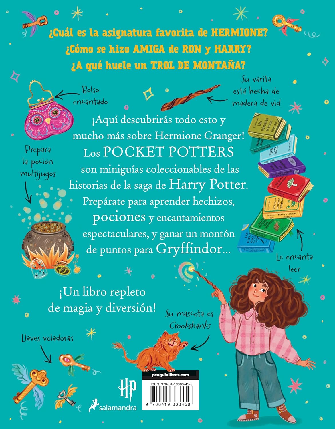 ¡Miniguías coleccionables sobre tus personajes favoritos! ¿Cuál es la asignatura favorita de Hermione? ¿Cómo se hizo amiga de Ron y Harry? ¿A qué huele un trol de montaña? ¡Aquí descubrirás todo esto y mucho más sobre Hermione Granger! Prepárate para aprender hechizos, pociones y encantamientos espectaculares, y ganar un montón de puntos para Gryffindor?