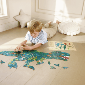 El puzzle de Suelo Brillante de Dinosaurio ofrece 200 piezas de descubrimiento práctico, con una llamativa silueta de T-Rex y una mezcla de piezas clásicas y de formas únicas. Fabricado en cartón duradero de primera calidad con un acabado brillante en la superficie, incluye un póster educativo a tamaño completo repleto de datos sobre los dinosaurios. Combinando la educación temprana y el juego, este puzzle fomenta el reconocimiento visual, la motricidad fina y la resolución de problemas a través de un aprendizaje divertido y familiar.