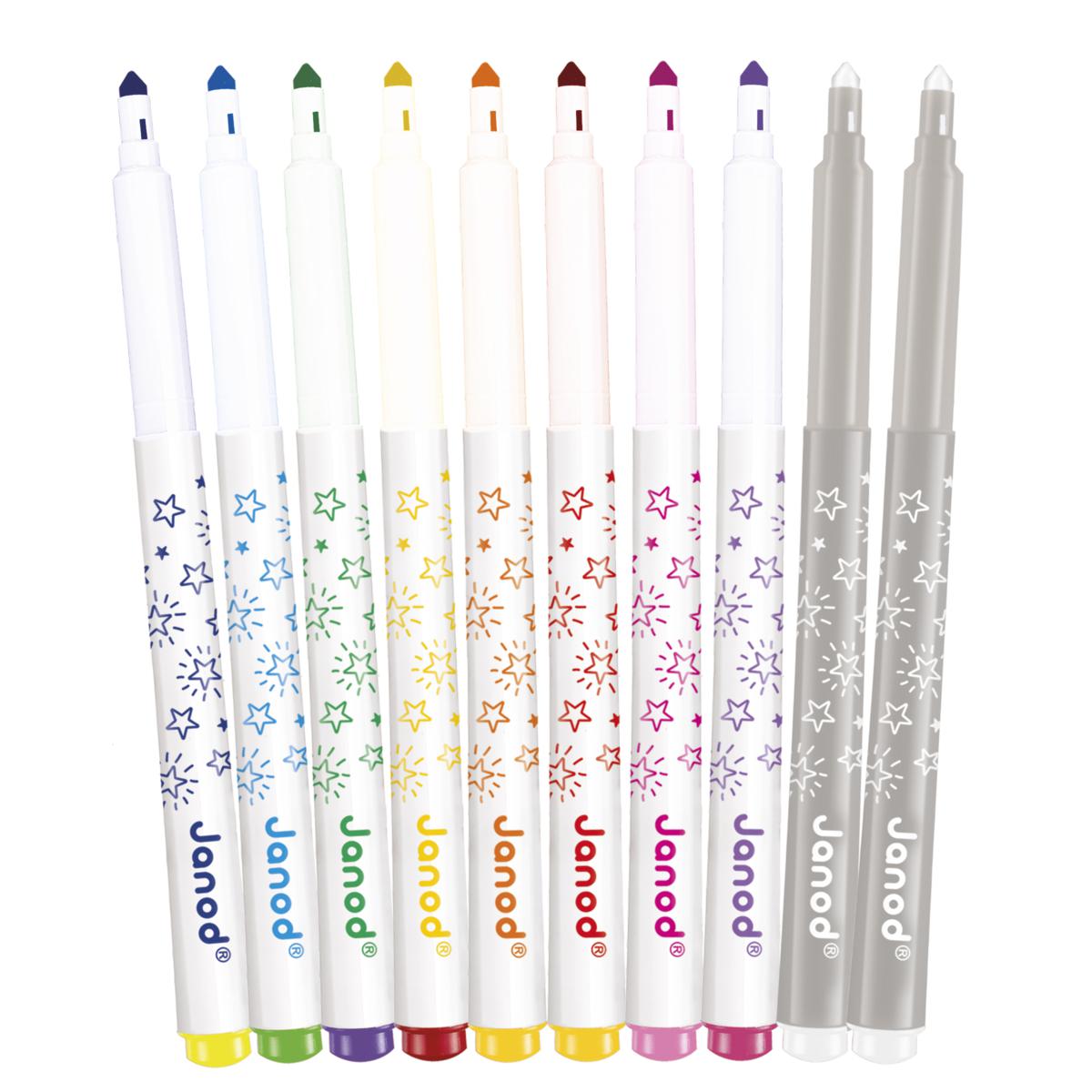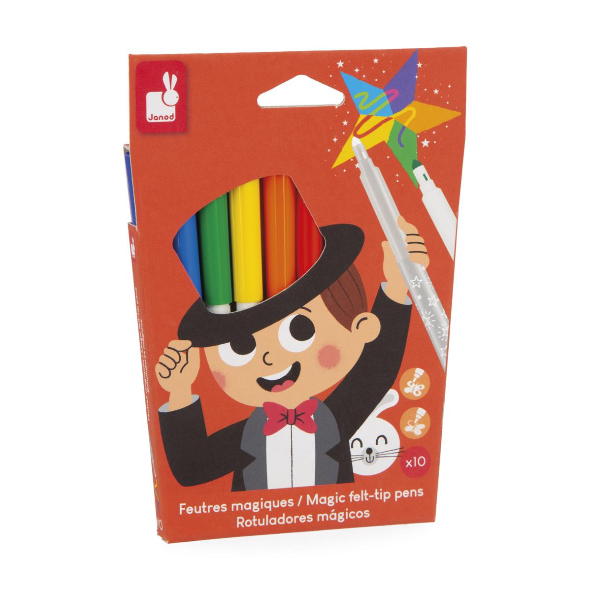 ¡Sorprenda a su hijo con los rotuladores mágicos! Este set de 10 rotuladores ofrece una experiencia única: la tinta cambia de color al instante al pasar el rotulador revelador. Gracias a su punta cónica, estos rotuladores te permiten colorear con la zona de la punta fina o gruesa, según tus necesidades. Con 8 rotuladores de colores y 2 rotuladores reveladores, la paleta de colores brillantes promete horas de creatividad y sorpresas. Una gran elección para estimular la imaginación. Producto para niños a partir de 3 años.