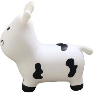 El animalito saltarín está hecho de plástico resistente y se puede sujetar por las orejas. Con la bomba manual incluida, se infla rápida y fácilmente. Apto para niños a partir de 12 meses y soporta un peso máximo de 25 kg.