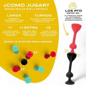 – Imprescindible para los amantes de los juegos de lanzamiento, los desafíos al aire libre y los giros creativos en clásicos como los dardos o la petanca. Reinventado para una diversión sin límites en suelos, paredes, ventanas y mucho más.