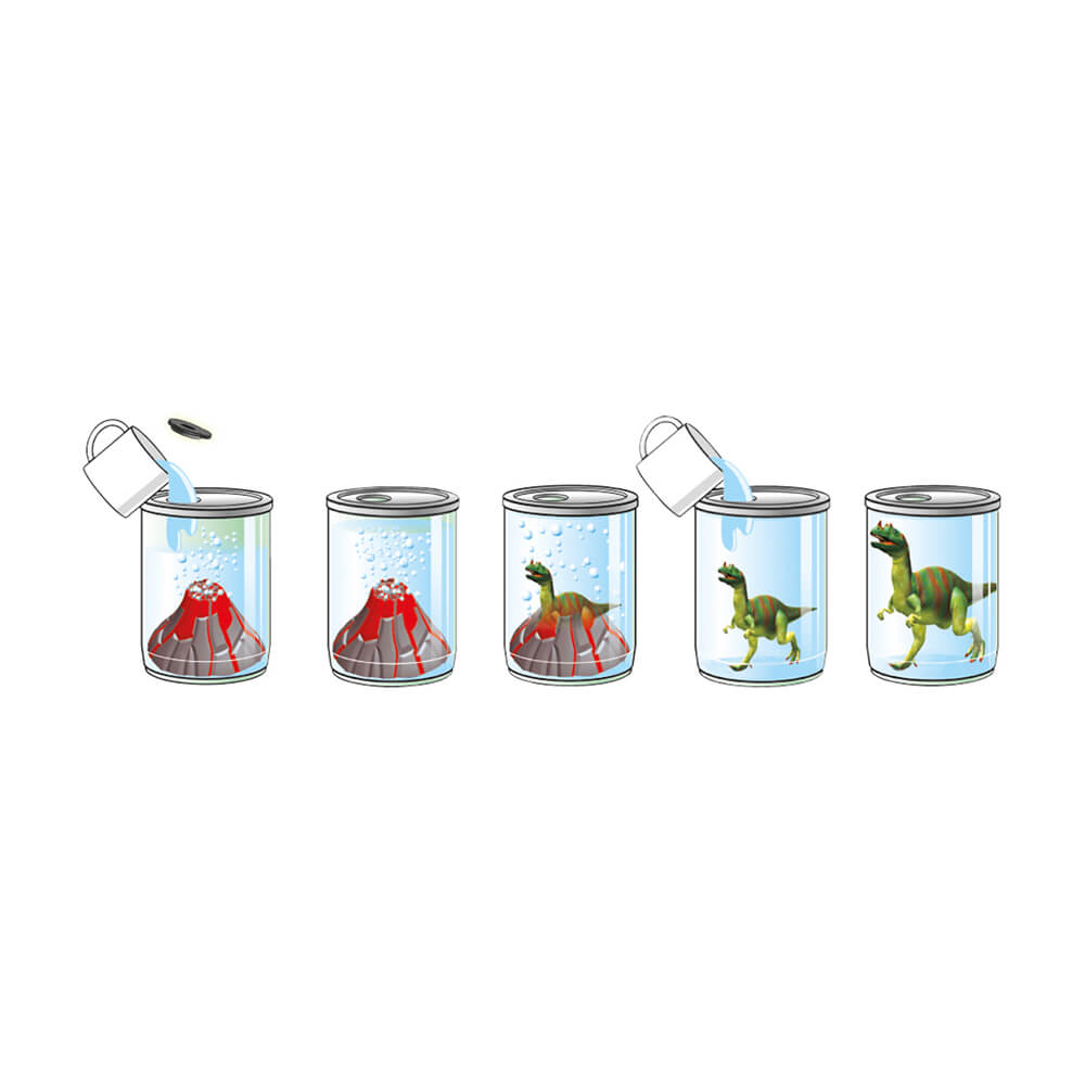Verter agua y el burbujeante Volcano da paso a un pequeño dinosaurio, que crece completamente en 72 horas. Medida: Ø 6,8 cm, altura 9,5 cm